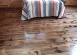 Sun room with 15" and 9: pine on diagonal with Newcombe's Original's own colour mix which he named "Maritimer Pine".